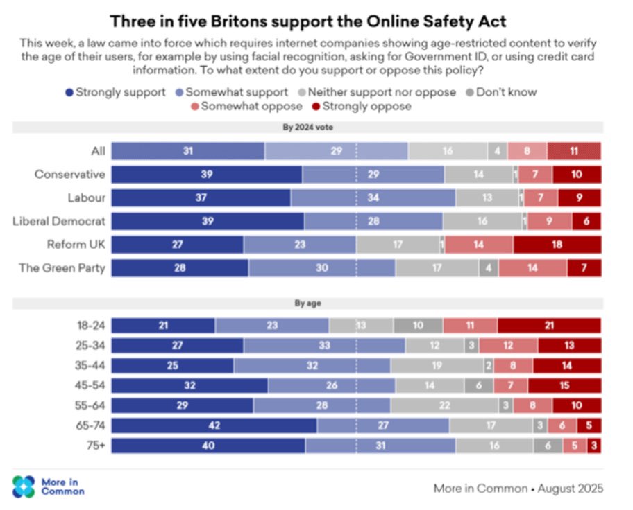 The votes I seen on parliament.uk about the Online Safety Bill show the split being usually the Tories vs. everyone else: https://votes.parliament.uk/votes/commons?SearchText=Online+...